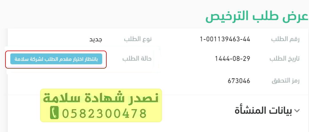 سيتم ارسال رمز تحقق لتزويده لشركة السلامة التي ترغب بالتعاقد معها